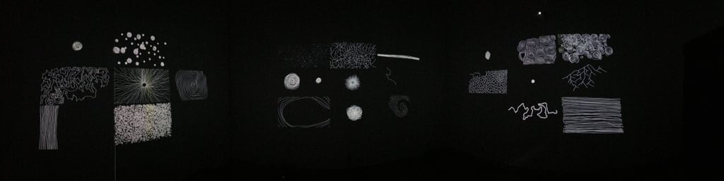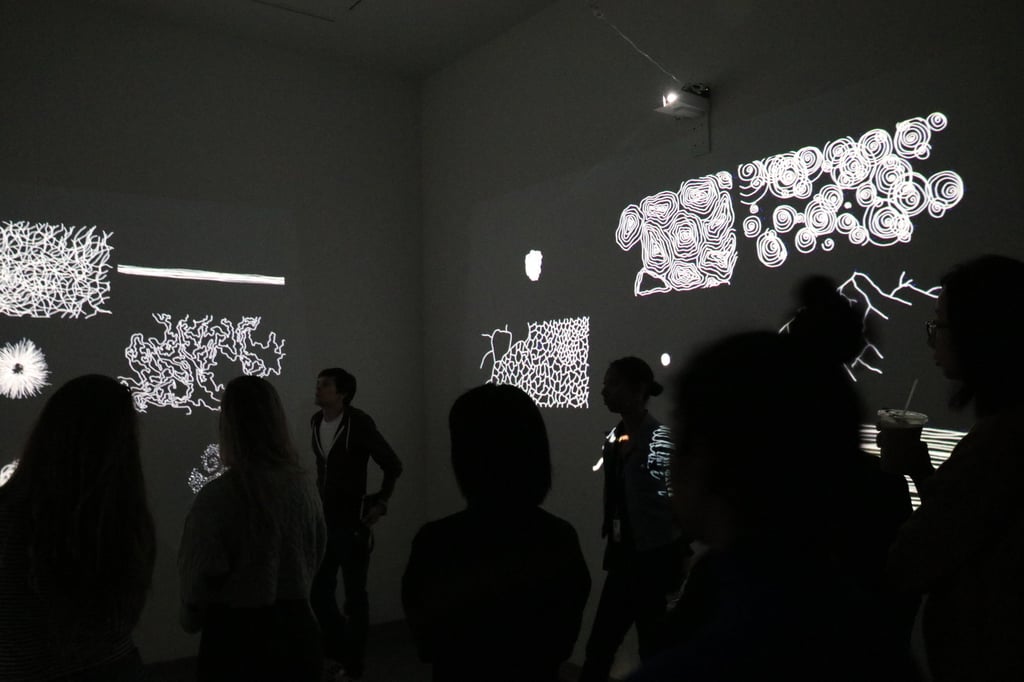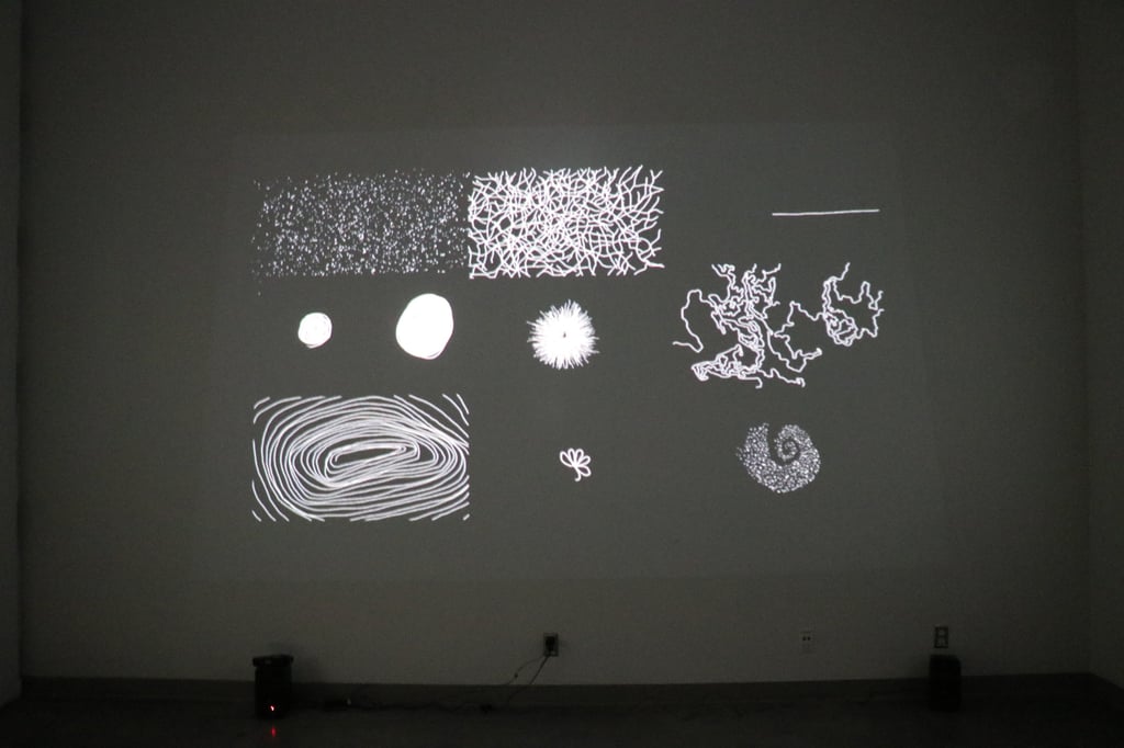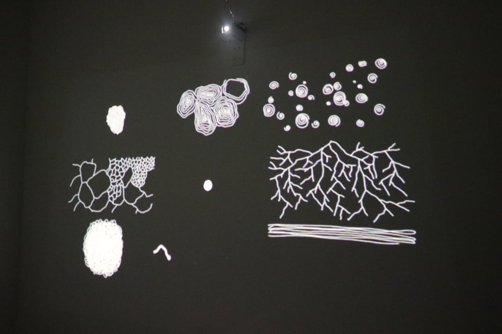 A three-part installation has been created to explore the nature of mycelium and other patterns of our environment. The installation brings to the forefront what lies beneath our feet, our forests, as well as our bodies. Twenty seven unique animations across the gallery identify different types of movement present in nature, which allows the narrative to be an experience. The movement of white lines in various projections emphasizes the idea of presence and absence existing in harmony.