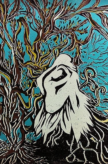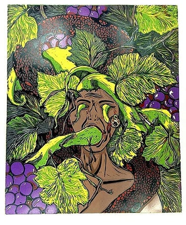These multi-layer prints was a process based impression of my journey through religion and conflict of societal judgments of how one forms an identity. It became an opportunity to create a self portrait of this distress through an artistic approach. The realization of how miniscule mankind is on earth can be overwhelming, which is why some turn to religion to seek solace and comfort. However, the print warns us not to let the fear of religious guilt overpower our lives. Instead, we should focus on the present moment and appreciate the simple joys of life. The print also highlights the importance of decay as food for earth, as it is the one thing that can bring us back to the natural world and remind us of our connection to it.