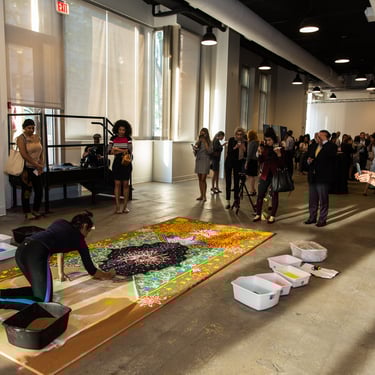 A performative piece as the audience watches the carpet come to life. The ephemeral carpet took inspiration from the traditional Indian technique of Rangoli, to simulate the physical presence of a floor rug. The aspect of time played an important role as viewers were curious to understand and witness the formation process.
