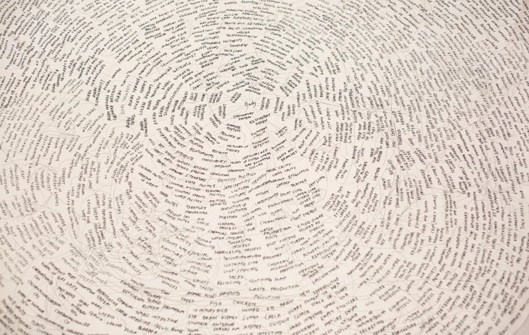 An experimental process to navigate research as a connected unit. It considers the multifaced nuances of relationships as it explores the metaphorical and physical existence of the subject.